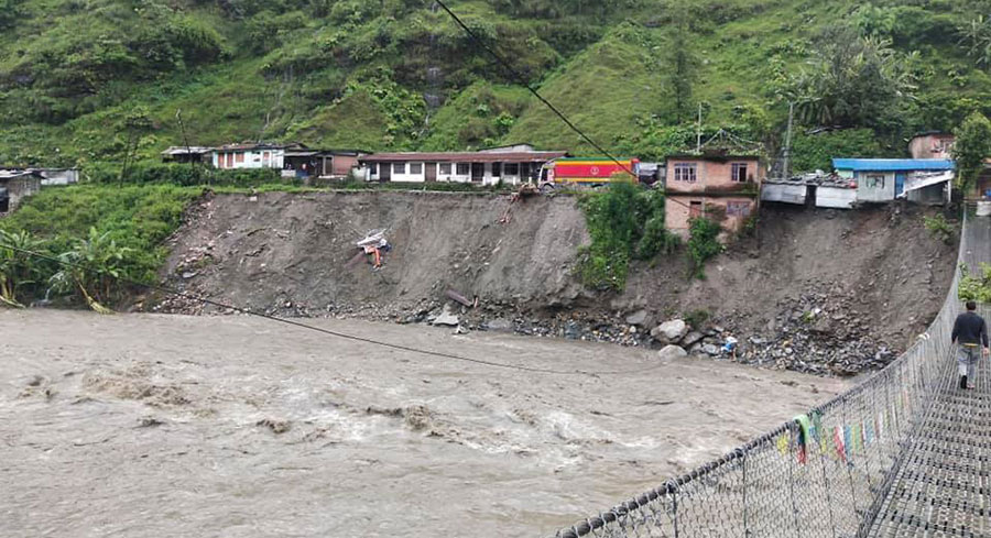 बाढीले हेलम्बुको चनौटेमा गत वर्षको बाढीपछि बनाइएको सडक भत्काएको छ । यस्तै हेलम्बुको ढुङ्गेबजार र मेलम्चीको सीमखेतमा पनि सडक अवरुद्ध भएको छ ।