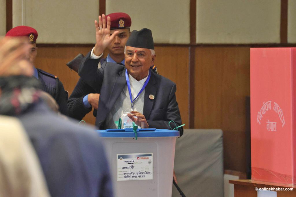 काठमाडौं, २५ फागुन । नेपाली काँग्रेसका वरिष्ठ नेता एवं पूर्व सभामुख रामचन्द्र पौडेल राष्ट्रपतिमा निर्वाचित हुनुभएको छ । मुलुकको तेस्रो राष्ट्रपतिका लागि आज भएको मतदानमा उहाँले आफ्ना प्रतिस्पर्धी नेकपा (एमाले)का उपाध्यक्ष सुवासचन्द्र नेम्वाङलाई पराजित गरी निर्वाचित हुनुभएको हो ।
