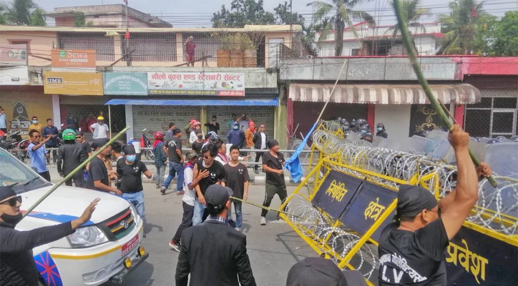 ९ वैशाख, विराटनगर । विराटनगरमा पहिचानको आधारमा प्रदेशको पुन: नामकरण माग गर्दै आन्दोलनरत पक्ष र प्रहरीबीच झडप भएको छ ।