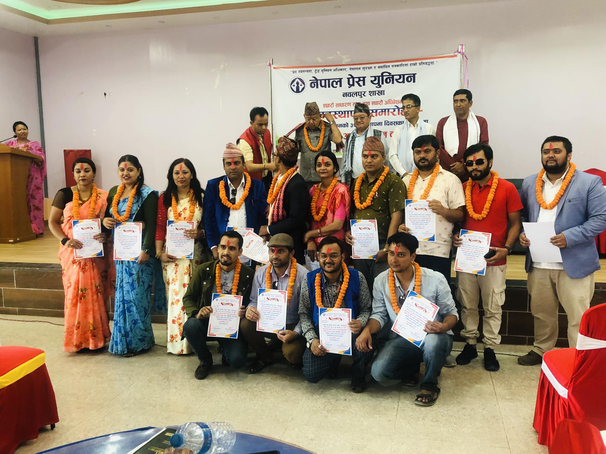 पत्रकारिता जगतमा पार्टीको भातृ संगठन भएतापनि समाजलाई अहित गर्ने खालका क्रियाकलाप कुनैपनि राजनिति दलबाट हुन गएमा पत्रकारले निष्पक्ष ढङ्गबाट कलम उठाउनु पर्नेमा जिसिको जोड थियो । नेपाल प्रेस युनियन नवलपुर शाखाको एघारौं जिल्ला अधिबेशनले अध्यक्षमा खगराज सापकोटालाई चयन गरेको छ । निर्वाचन मार्फत सापकोटा अध्यक्ष तथा उपाध्यक्षमा सुजन अधिकारी, समावेशी उपाध्यक्षमा मिना कँडेल , सचिवमा कल्पना कुँवर , सहसचिवमा गीता गैरे , कोषाध्यक्षमा अजय पौडेल चयन भएका हुन । सदस्यहरूमा गोविन्द रिमाल , एलिना केसी , नवराज अधिकारी, शुसिल भुसाल , निकेश काफ्ले , नारायण प्रसाद भुर्तेल , नारायण सुवेदी , सन्तोष गौडेल , सञ्जय भट्टराई र दिपा पंगेनी निर्विरोध निर्वाचित भएका छन । यस्तै शनिबार सम्पन्न कार्यक्रमले निवर्तमान कार्यसमितिलाई सम्मान पत्र प्रदान गरि सम्मान गरेको नवनिर्वाचित अध्यक्ष खगराज सापकोटाले जानकारी दिए ।